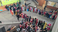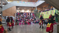 Zur 4. Stunde standen schließlich die drei Sieger in den jeweiligen Klassenstufe fest und so konnten vor dem großen Publikum aller Kinder der Schulgemeinschaft in der Aula folgende Gewinner gekürt werden: Mila Lindenmaier (in Klassenstufe 2), Anton Eutinger (in Klassenstufe 3) und Sarah Sturcz (in Klassenstufe 4). Unter tosendem Applaus wurde ihnen von Frau Baur ein Büchergutschein, eine Gewinnerrose sowie eine Siegerurkunde überreicht.